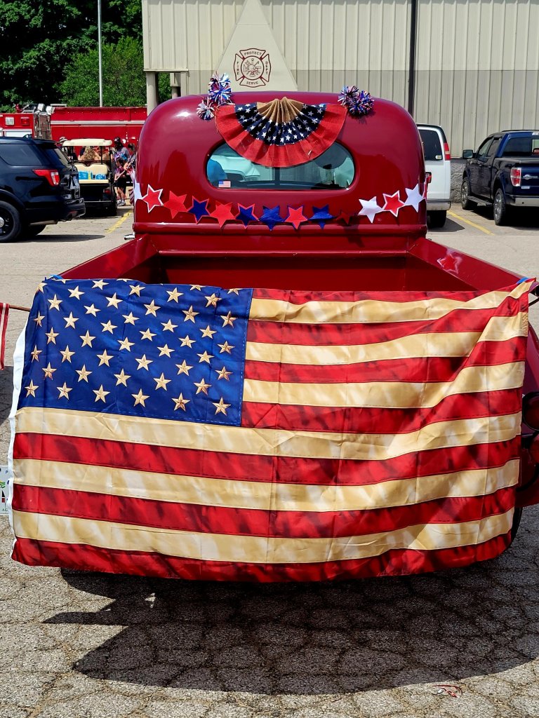 We trucked our way over to a neighboring town and swagged our way right into a 4th of July parade! The town of Eau Claire Michigan has been known for its lively celebration each July 4th weekend. The 3 day festivities has included all things cherries. Michigan is known for producing delectable varieties of sweet and sour cherries. The weekend party features a 🍒 pit spit contest and has earned quite notarity throughout the country for this annual event. The parade on the 4th brings a crowd of participants who shower the street lined onlookers with candy and well wishes! Down the main street as traditional patriotic music blasts loudly, the procession ambles along. Entering Strut in the parade continues to be a part of our weekend celebration as well. Cheers of approval , smiles from all , hands held out as candy is tossed, make this part of our day a memorable one! RIding along in this little red classic nostalgia continues to be the perfect way to celebrate and remember our freedom and those who have made it possible!