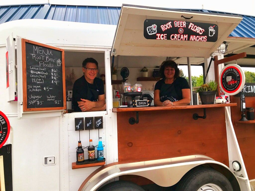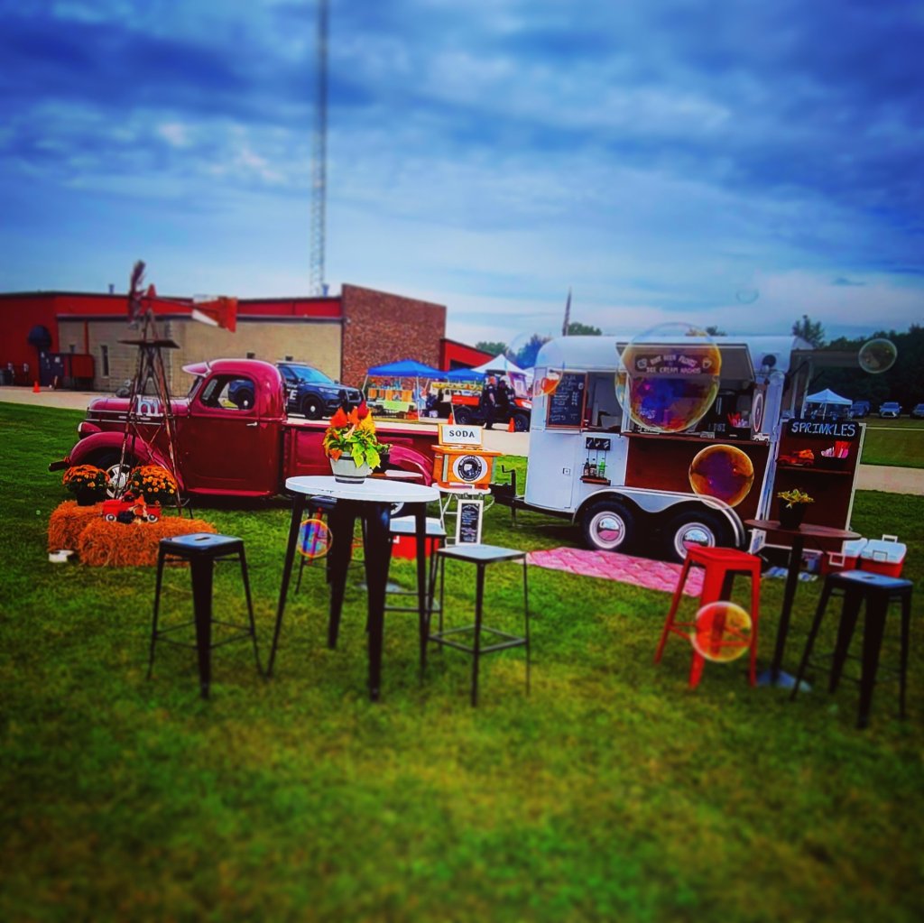 Several early morning rollouts combined with some afternoon appearances have found us out and about, trekking to all kinds of events! A 5K, a series of Munchie Monday community events, a fabulous Rod and Roll Classic car event, a 4 year old American Girl themed Birthday party, a Corporate Employee Appreciation, a Saturday Fall festival . Whew! We are tooling around and serving it up! Smiles, sprinkles, cherries and whip cream! Great people! Great fun! This little red truck is finding its way! Right down the vending road and right into the hearts 💕 of people of all ages and all walks of life! The tag a long trailer is hitched and happy! New life , new purpose, rolling along ,gathering new adventures! Little Red 🛻 rolling along!